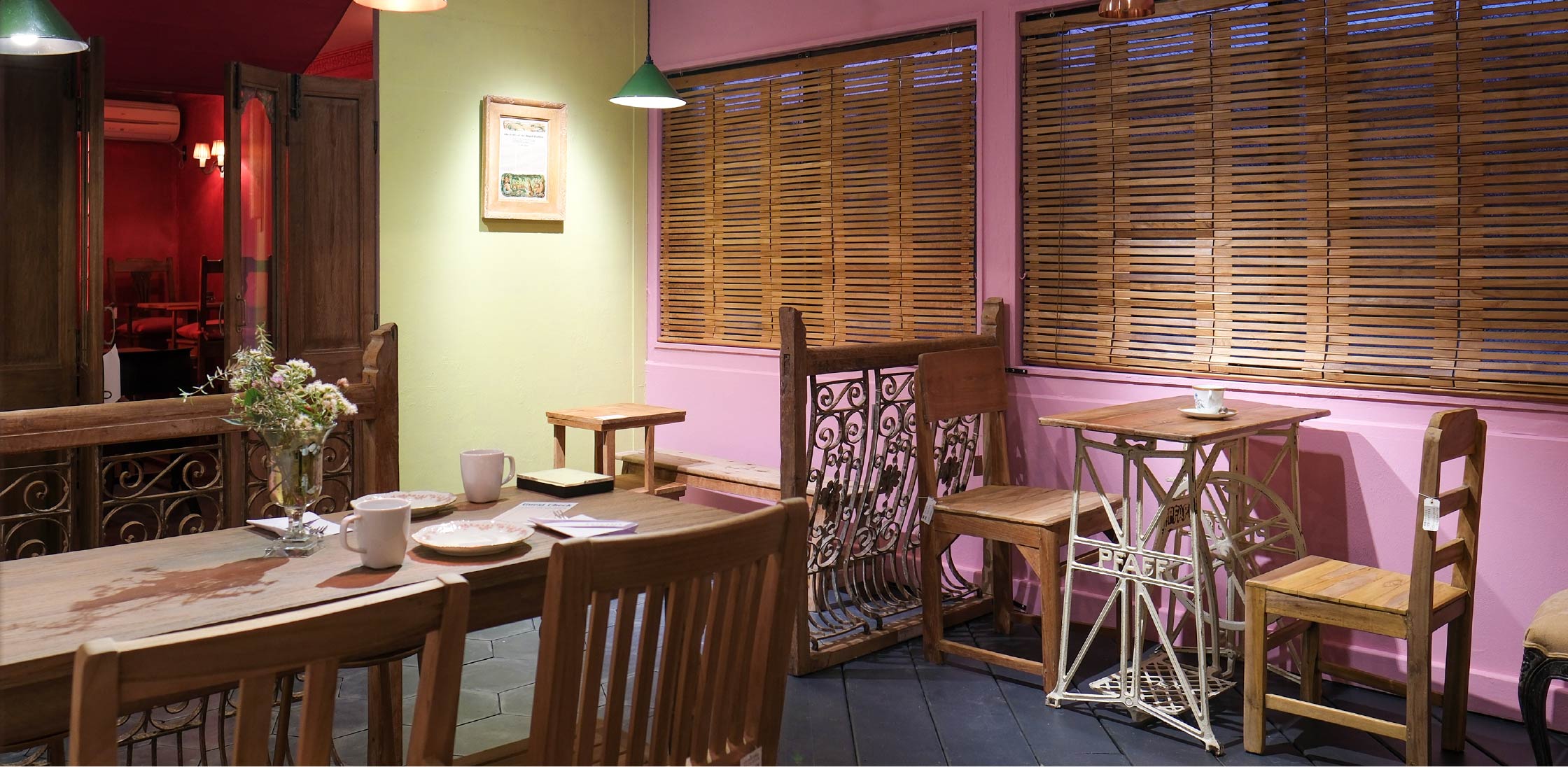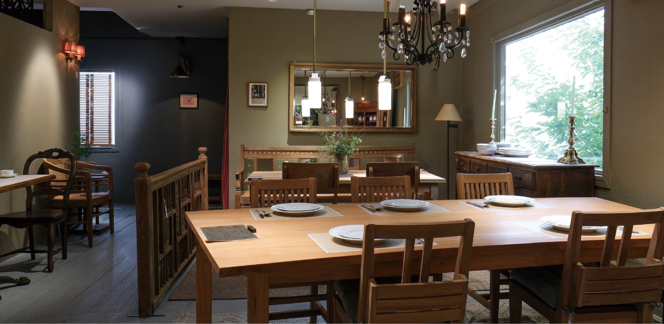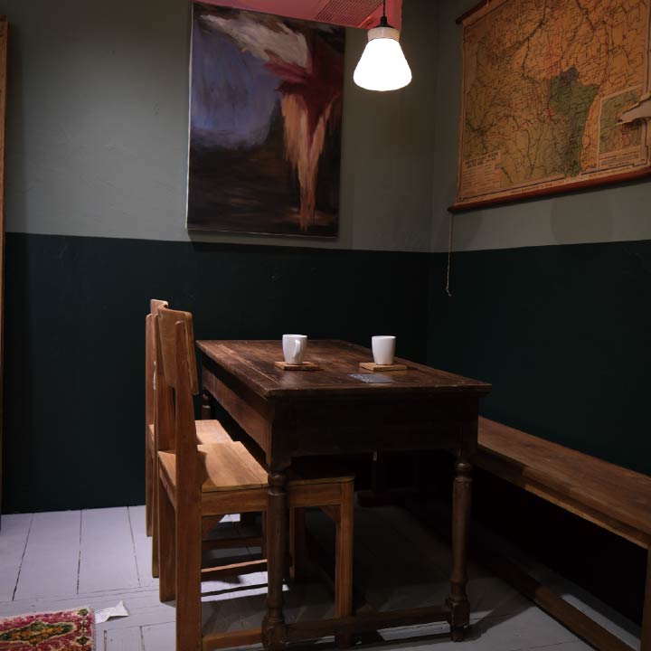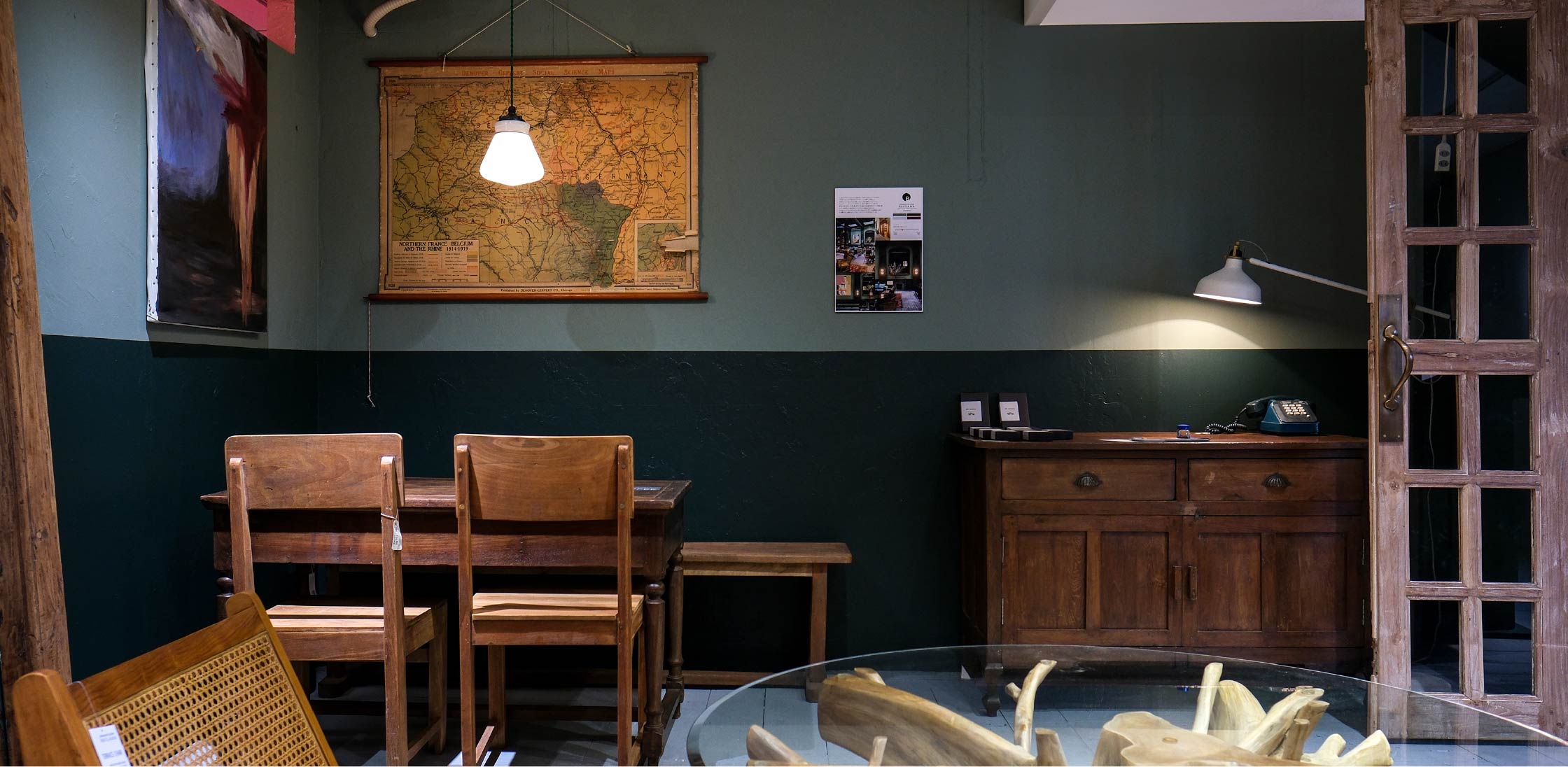 当時のしつらいをところどころ残し、グリーン色を基調にデザインした。