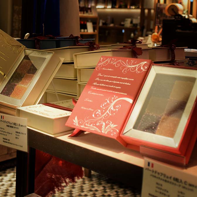 • フランス・イタリアから直輸入したスイーツ等のサービスを提供している「ル・ボヌールパリス」。芦屋にあるお店では「パリキャラメル」「パートドゥフリュイ」「ペリーノ」「カフェ」を提供しています。今回GINZA SIX B2Fにて一ヶ月のポップアップを展開しています。売り場のディレクションを含め什器のリース、各種製作物に関わらせて頂きました。